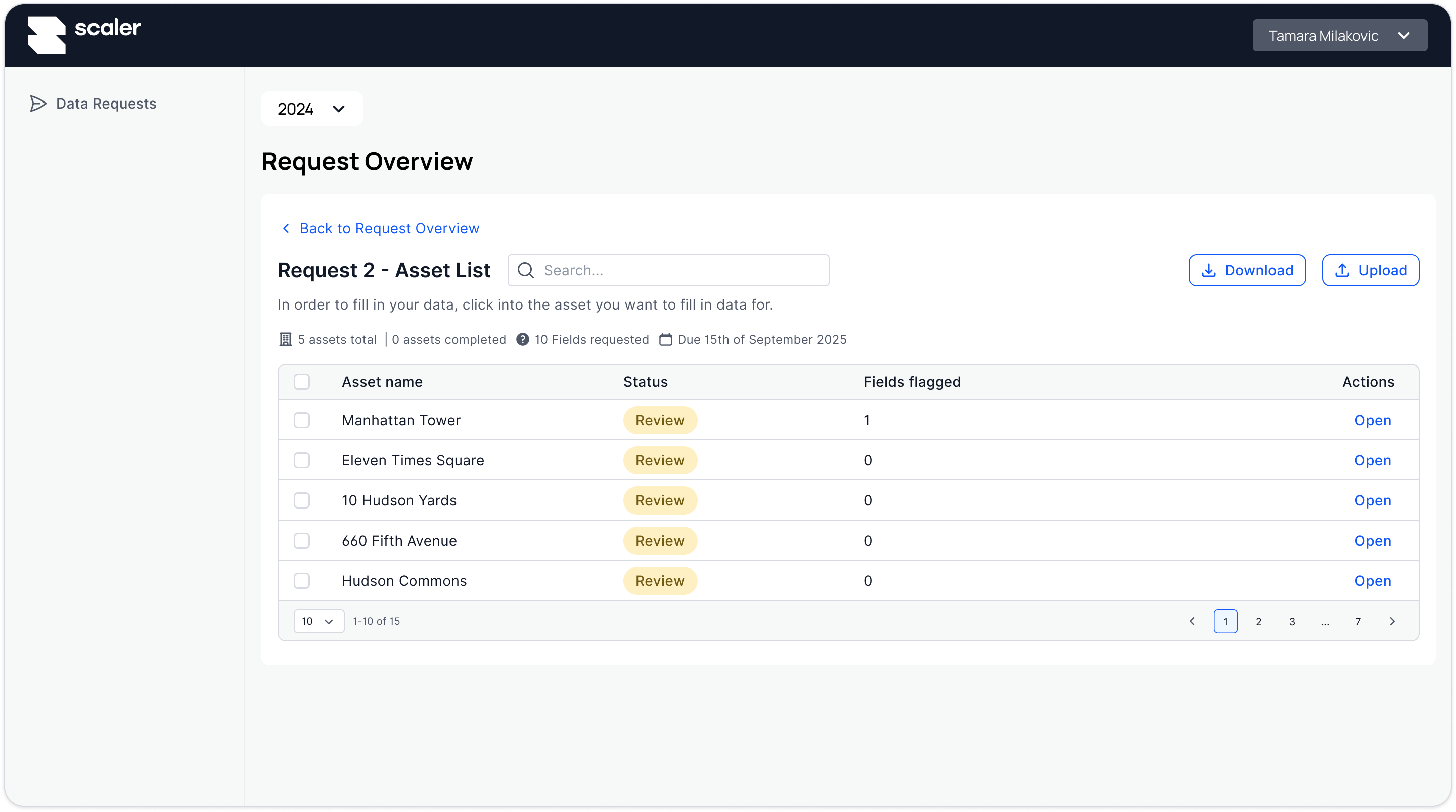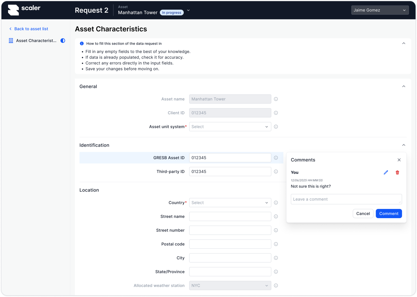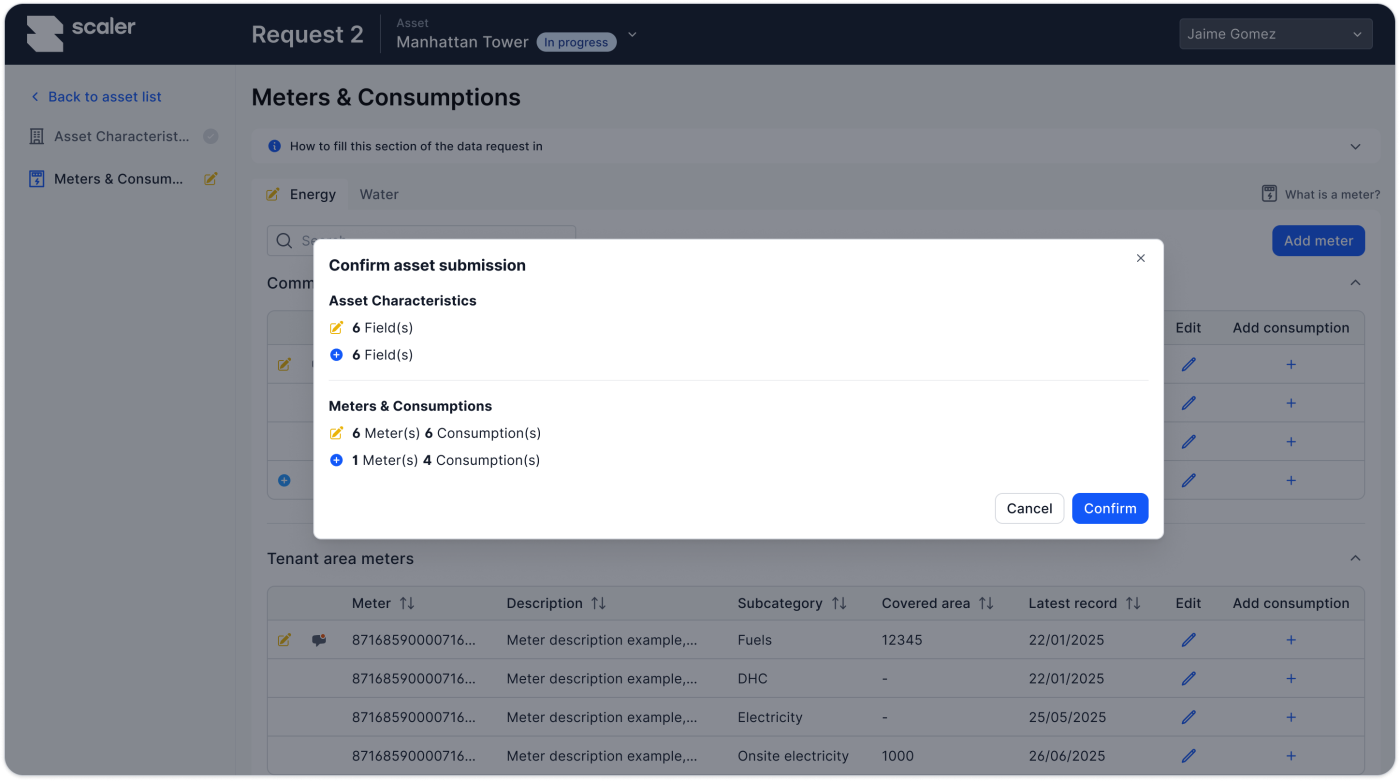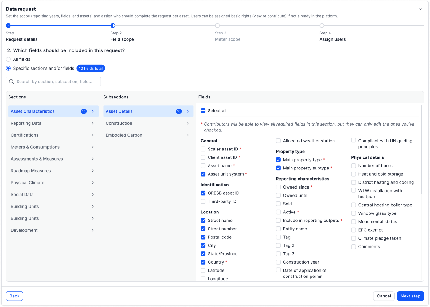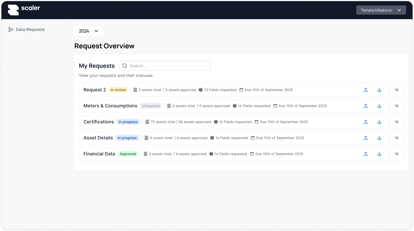 Create data requests directly from the asset overview, targeting specific fields or meters.
